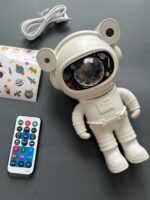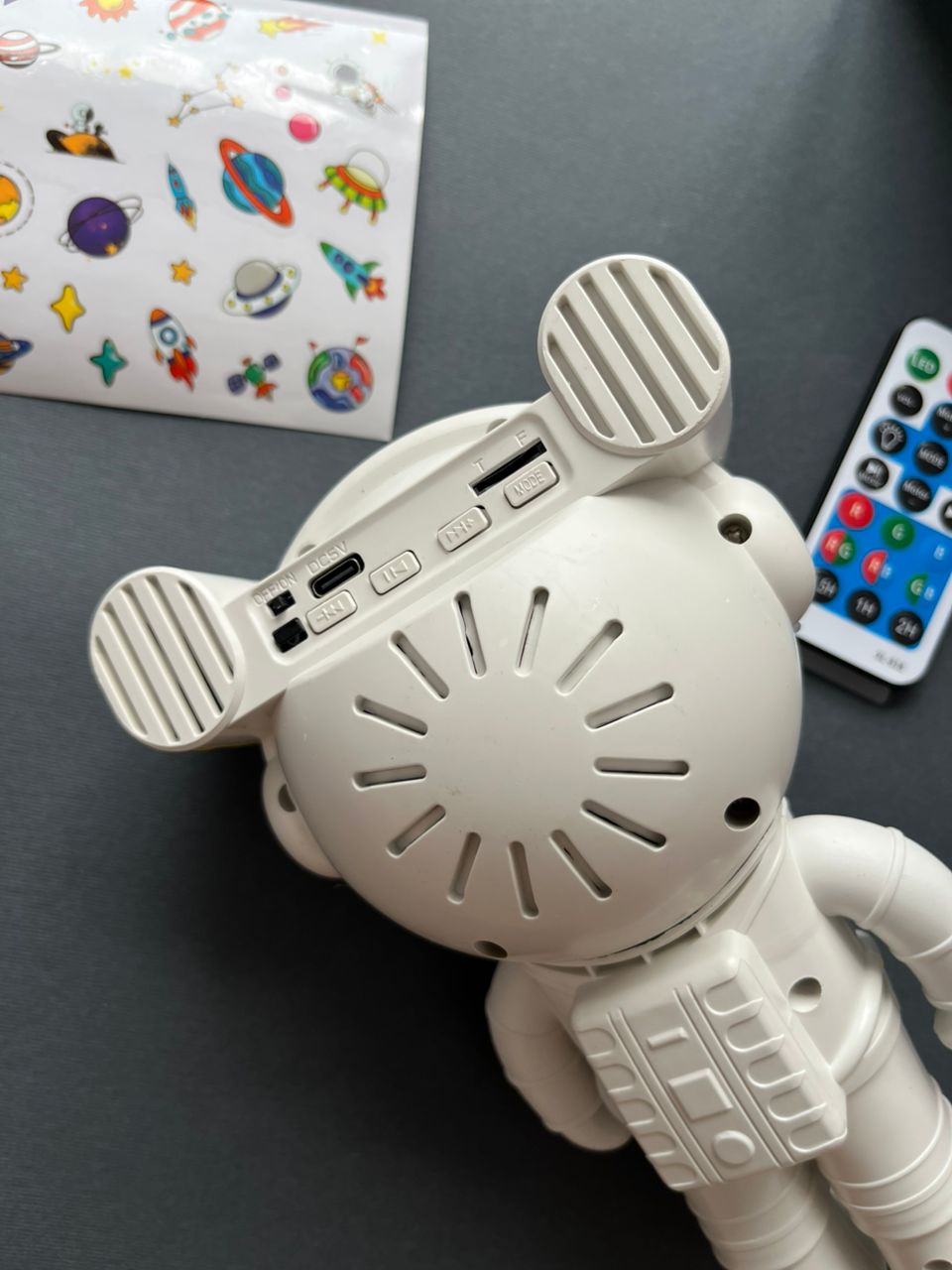 چراغ خواب کهکشانی فضانورد مدل اسپیکر دار یک محصول جذاب برای اتاق خواب خردسالان و کودکان است. این چراغ خواب با رابط type-c به برق متصل شده و همانند یک پروژکتور تصاویر کهکشان را بر روی دیوار یا سقف منعکس می کند. علاوه بر چراغ خواب ، این گجت دارای اسپیکر بوده و همزمان با پخش تصاویر، موسیقی پخش میکند. این دستگاه به صورت پیش فرض دارای چندین موسیقی در حافظه خود بوده و علاوه بر این می تواند از طریق بلوتوث به گوشی موبایل متصل شده و موسیقی های مورد علاقه کاربران را به صورت بی سیم، پخش کند.